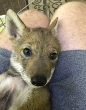 Because the little fox was terrified, we locked our two dogs in another room. Then we got a crate and put a fluffy towel in it to make him comfortable, and, of course, we fed him. He didn’t drink any milk, so that was a sign that he had already stopped drinking his mother’s milk. We figured out that he must be about one year old. Even though he didn’t drink the milk, he gobbled up the chicken.